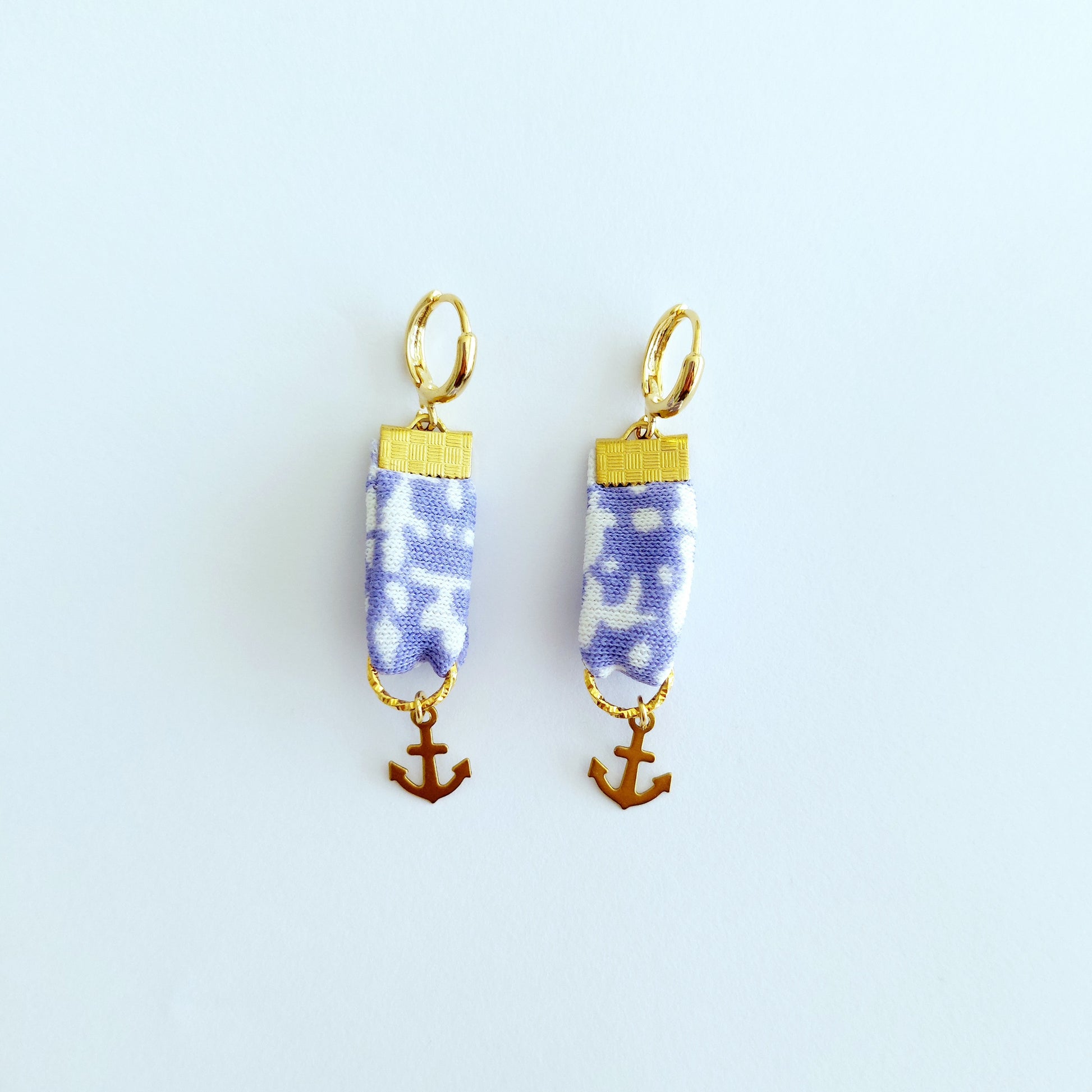 Amalfi lila wit anker medaille oorbellen