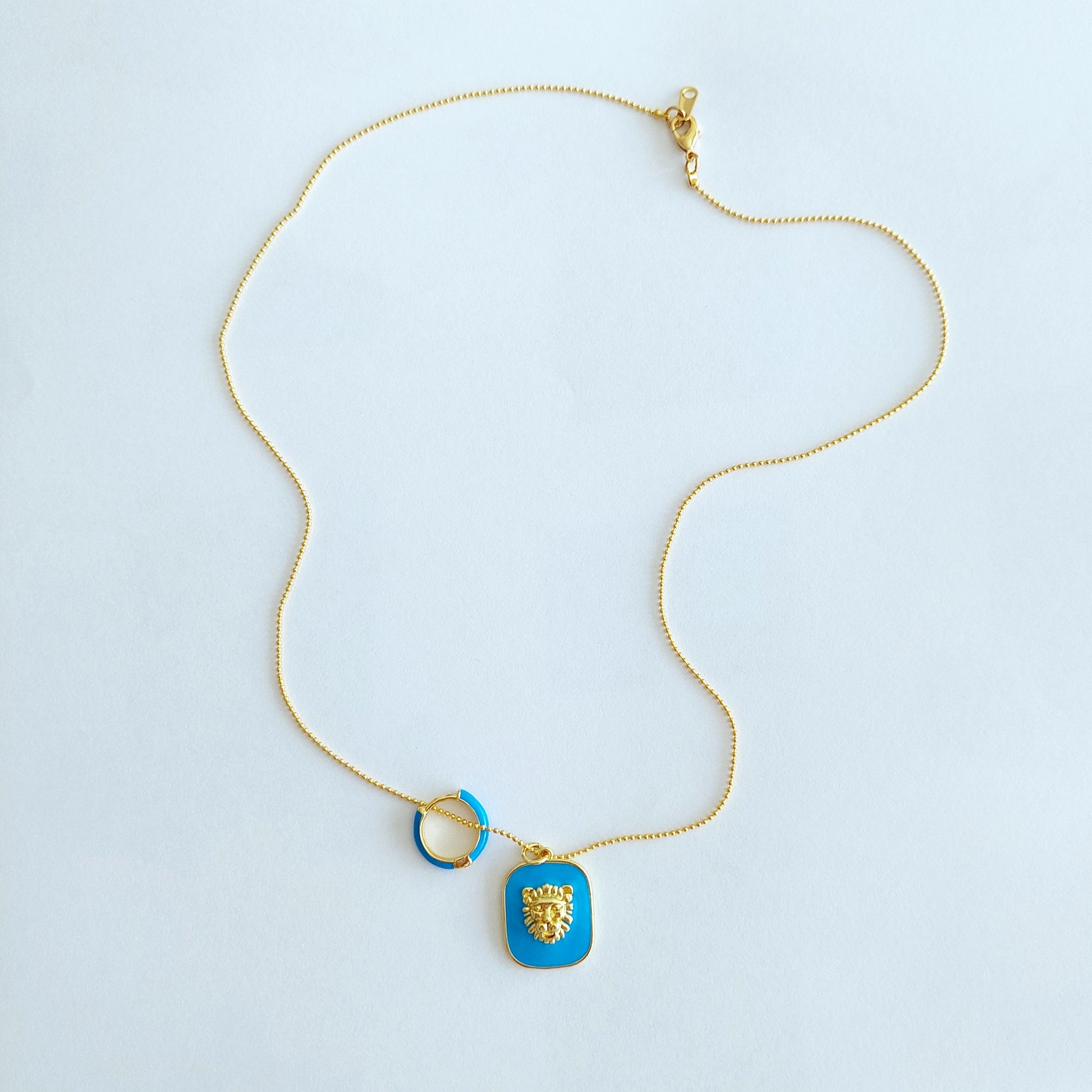 Nikkelvrije 24k vergulde ketting met 18k vergulde turquoise tijger & ring.