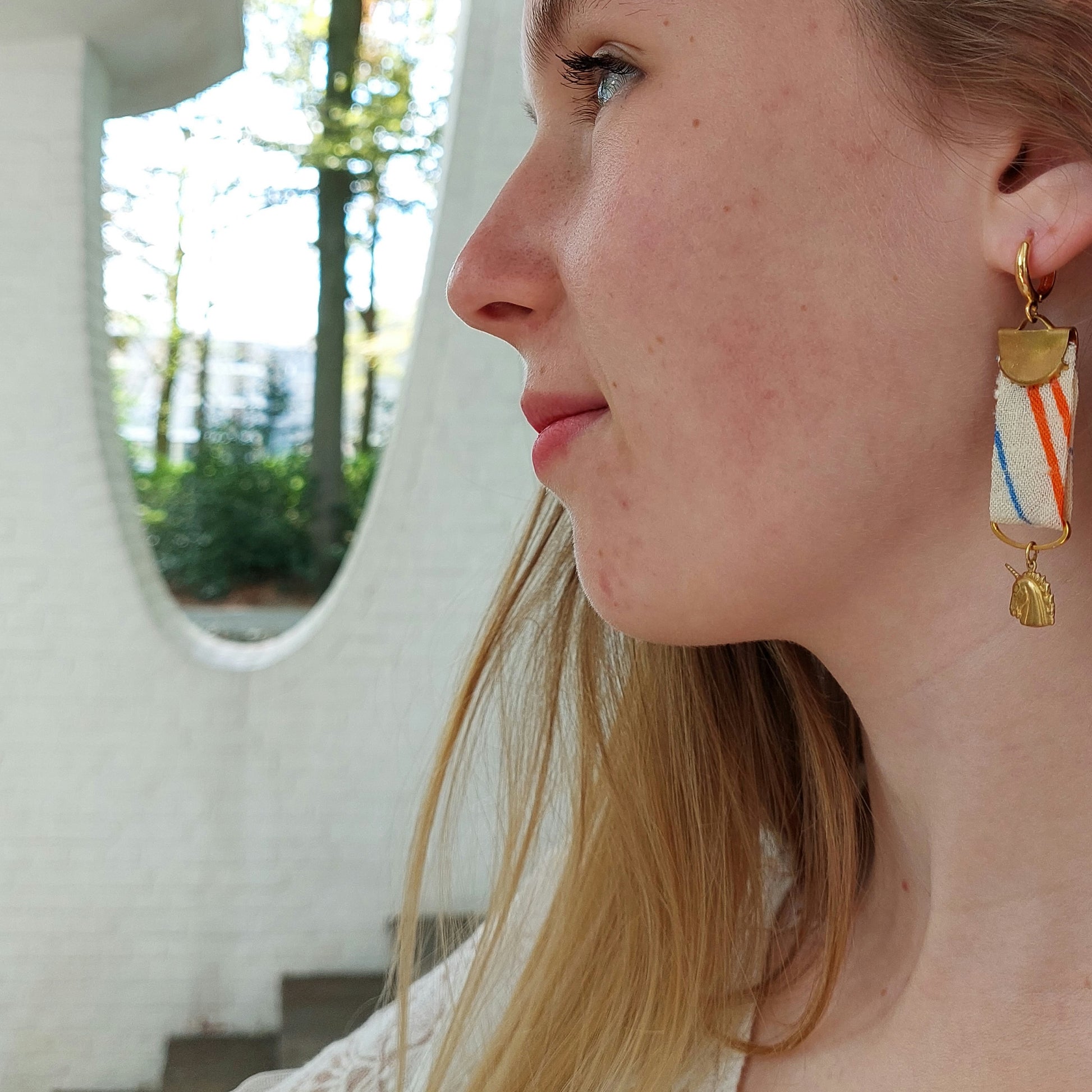 Ibiza unicorn medaille oorbel set