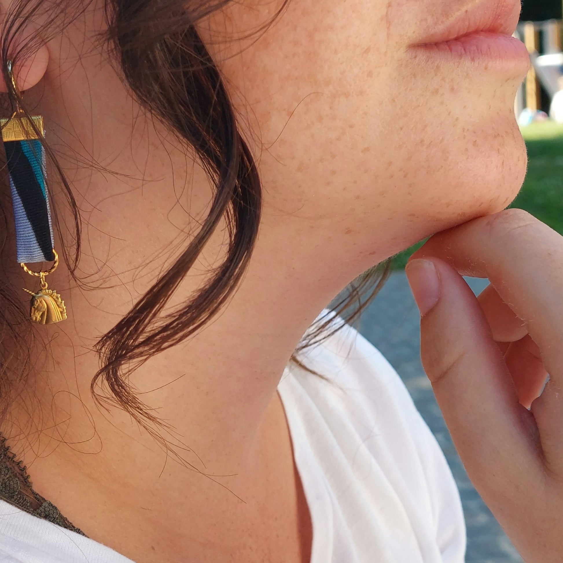 Surf Art unicorn medaille mixed lengte oorbellen
